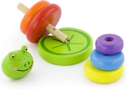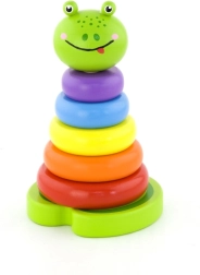 La pyramide empilable en bois Grenouille est un jouet idéal pour les enfants dès 2 ans. Elle est conçue pour aider à développer la coordination œil-main et renforcer la capacité de différenciation des couleurs. Le jouet se compose d’anneaux multicolores à empiler sur une base en bois avec une adorable grenouille au sommet.