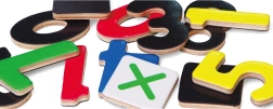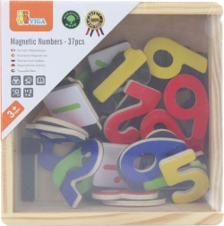 Il contient 37 pièces — chiffres et symboles mathématiques — qui adhèrent de manière fiable aux tableaux ou au réfrigérateur grâce à la couche magnétique. La construction en bois multicouche robuste et les surfaces lisses et vernies garantissent une longue durée de vie et une prise en main confortable pour les petites mains.