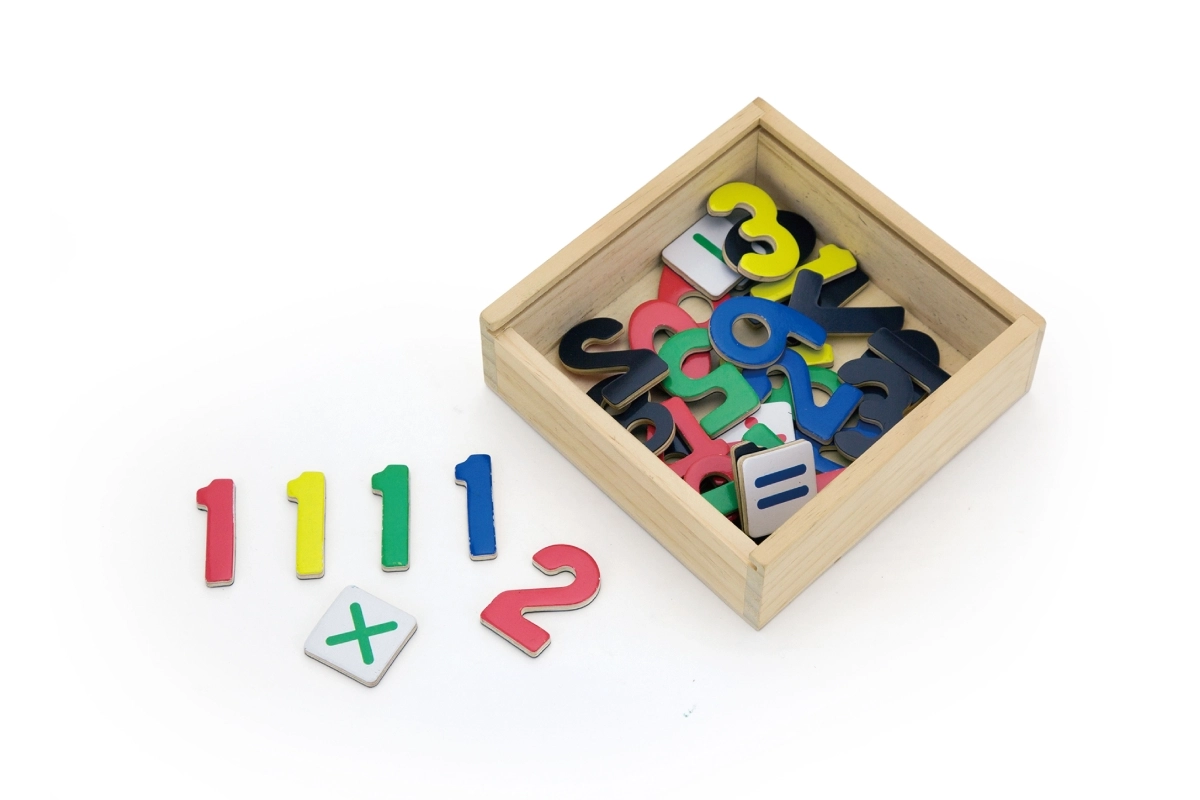 Ce set de chiffres magnétiques en bois et plastique, livré dans une boîte en bois robuste, favorise la motricité fine, la pensée logique et les premiers pas en mathématiques. Grâce aux couleurs vives et aux formes agréablement arrondies, les enfants composent facilement des nombres et opérations arithmétiques de base.