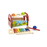 Ce banc à marteler en bois avec xylophone combine jeu actif et découverte musicale. Les enfants martèlent les billes à travers les ouvertures, suivent leur trajectoire puis tapent de simples mélodies sur les lames colorées du xylophone. Ils entraînent ainsi en douceur la précision, le sens du rythme et la patience.