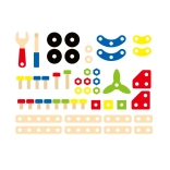 Ce jeu de construction en bois de type constructeur est un excellent choix pour un premier montage technique. Les enfants peuvent créer leurs propres réalisations selon leur imagination ou s’inspirer du livret illustré fourni. Le seau compact avec anse facilite le transport et le rangement, pour avoir le jeu toujours à portée de main et ne pas perdre les pièces.
