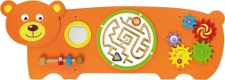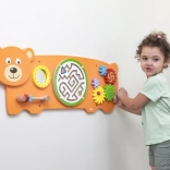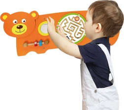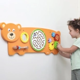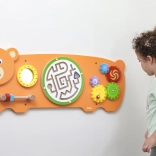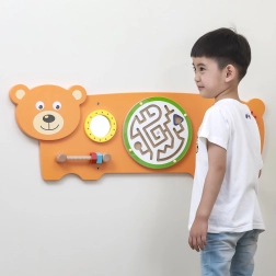 La planche sensorielle Ours est conçue selon les principes Montessori afin de motiver naturellement les enfants à explorer et à exercer leurs compétences. Elle propose plusieurs types d’activités : faire tourner les rouages, guider la bille dans le labyrinthe, s’observer dans le miroir sécurisé et entraîner la préhension grâce aux vis filetées. Grâce à sa structure en bois robuste et à la possibilité de fixation murale, elle convient parfaitement aux chambres d’enfants, salles de jeux et écoles maternelles.