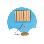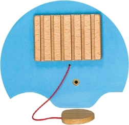 La barre rainurée émet des sons caractéristiques lorsqu’on la frotte avec la baguette. Les enfants entraînent la prise en main, la coordination et le sens du rythme.