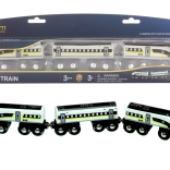 Un train en bois rapide et amusant inspiré du légendaire Shinkansen. Il offre un « moteur » puissant pour une conduite vive, une excellente stabilité sur les rails et un fonctionnement confortable avec des locomotives à chaque extrémité, ce qui évite de devoir retourner le train. Compatible avec la plupart des circuits de trains en bois du marché. Âge 3+.