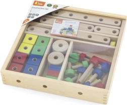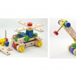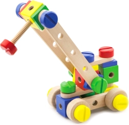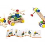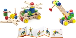 Ce kit de construction en bois de qualité offre aux enfants d’innombrables possibilités de création. Grâce aux 53 pièces colorées, chevilles, vis et connecteurs, ils peuvent assembler facilement des modèles simples comme des constructions imaginatives. Une brochure illustrée claire est incluse, qui inspire et guide pas à pas les premiers projets.