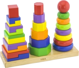 - Assemblage interactif: Les pièces colorées peuvent être combinées et empilées sur trois broches différentes.