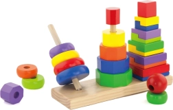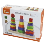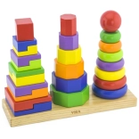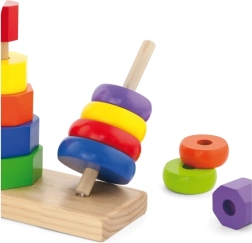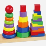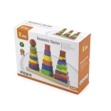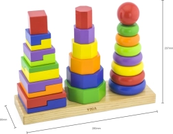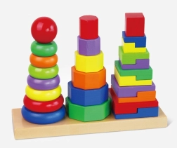 Le puzzle en bois pyramide est un jouet idéal pour les enfants dès 2 ans, qui favorise le développement de la motricité et la reconnaissance des formes grâce aux pièces géométriques colorées.
