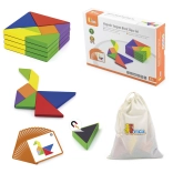 Ce tangram en bois coloré est un outil idéal pour jouer à la maison comme pour l’éducation préscolaire. Les enfants assemblent des images à partir des cartes fournies ou selon leur propre imagination, développant ainsi la représentation spatiale, la créativité et la capacité à résoudre des problèmes. Les pièces en bois massif, soigneusement polies, sont agréables en main et résistantes à un usage quotidien.