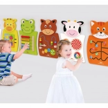 • Tableau de manipulation en forme de chat avec des labyrinthes découpés sur le ventre.
