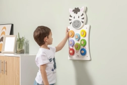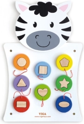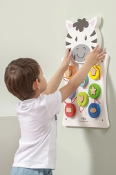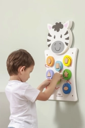 Découvrez la magie du tableau mural en bois Zebra de VIGA, qui développe non seulement la pensée créative et la dextérité, mais aussi la capacité à reconnaître les formes et les couleurs. Ce jeu convient aux jeunes enfants qui développent leurs compétences sensorielles à travers le jeu.