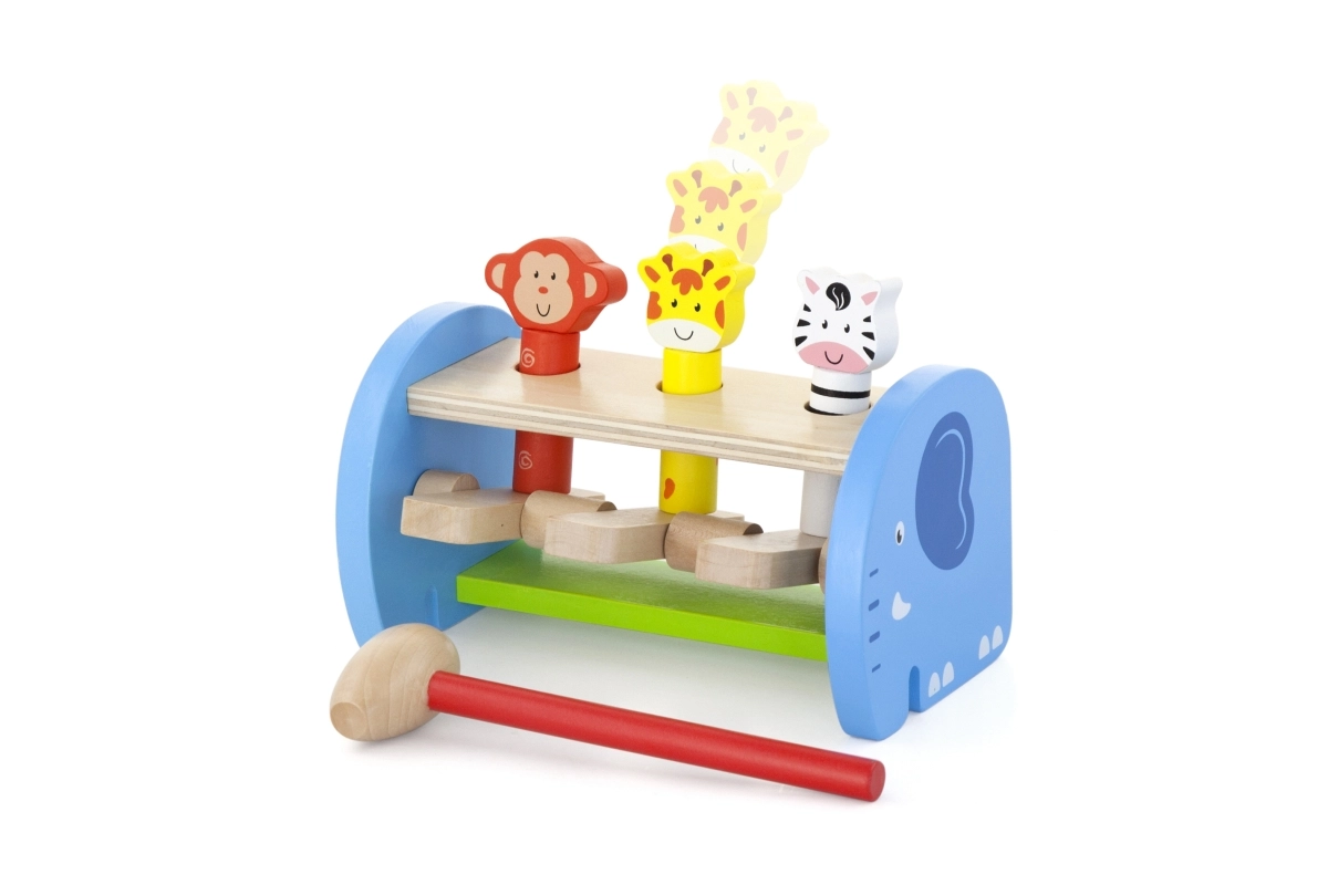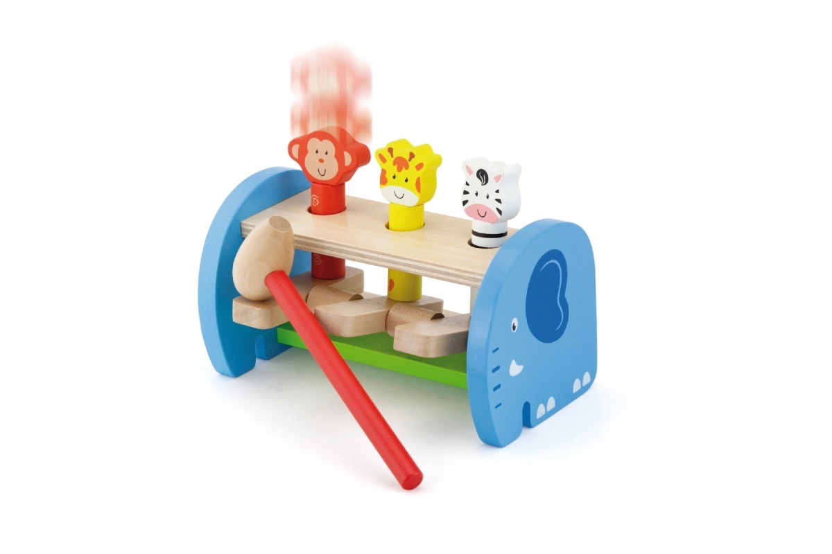 Après un coup de marteau, les animaux surgissent – les enfants voient immédiatement le résultat de leur geste et aiment le répéter. Idéal pour entraîner l’attention et la précision.