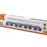 Ce train à grande vitesse complète parfaitement la plupart des circuits en bois et enrichit le jeu avec une rame moderne inspirée des trains à grande vitesse.
