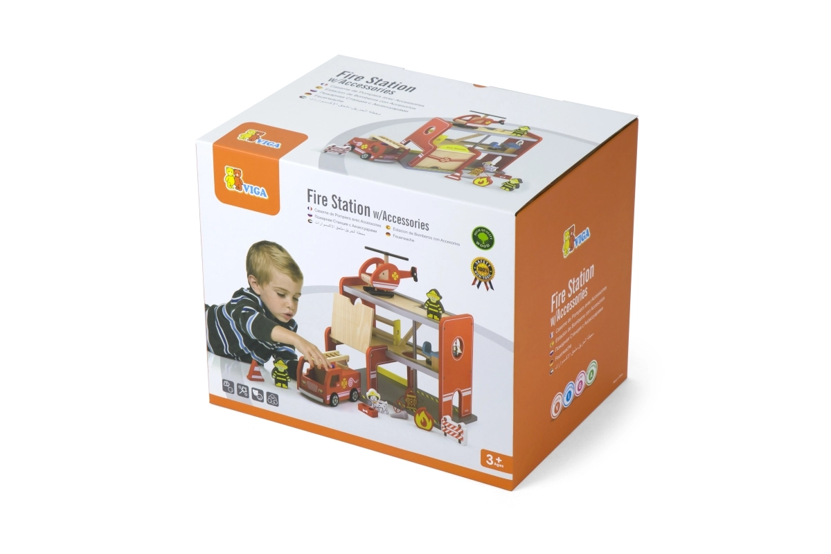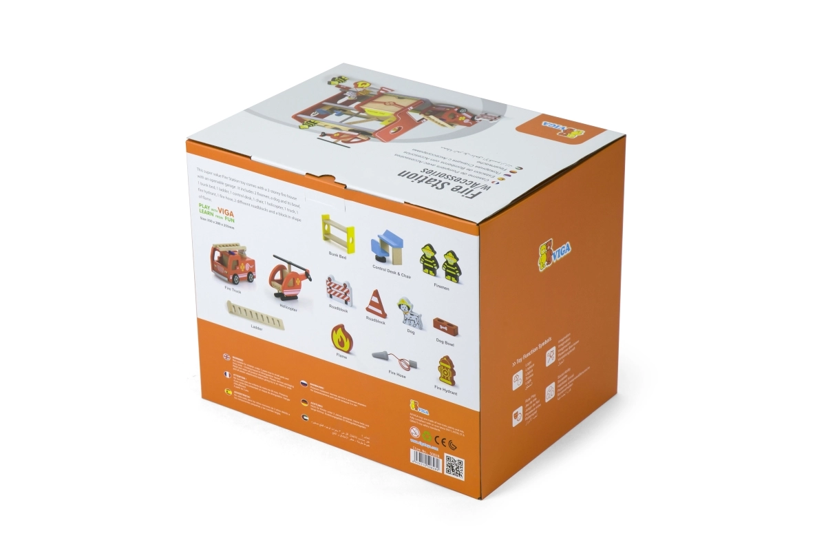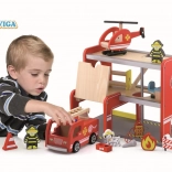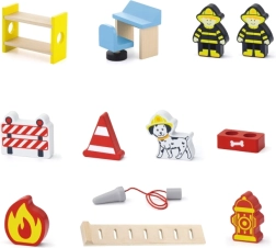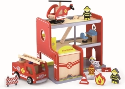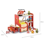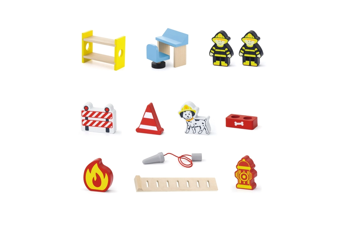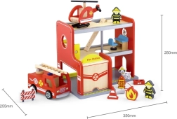 Cette caserne de pompiers en bois, richement détaillée, offre aux enfants un cadre authentique pour des missions de sauvetage. Grâce à la station rouge à plusieurs niveaux, au camion avec échelle et à l’aire d’atterrissage pour hélicoptère, les enfants créent facilement leurs propres histoires tout en exerçant coordination et raisonnement logique.
