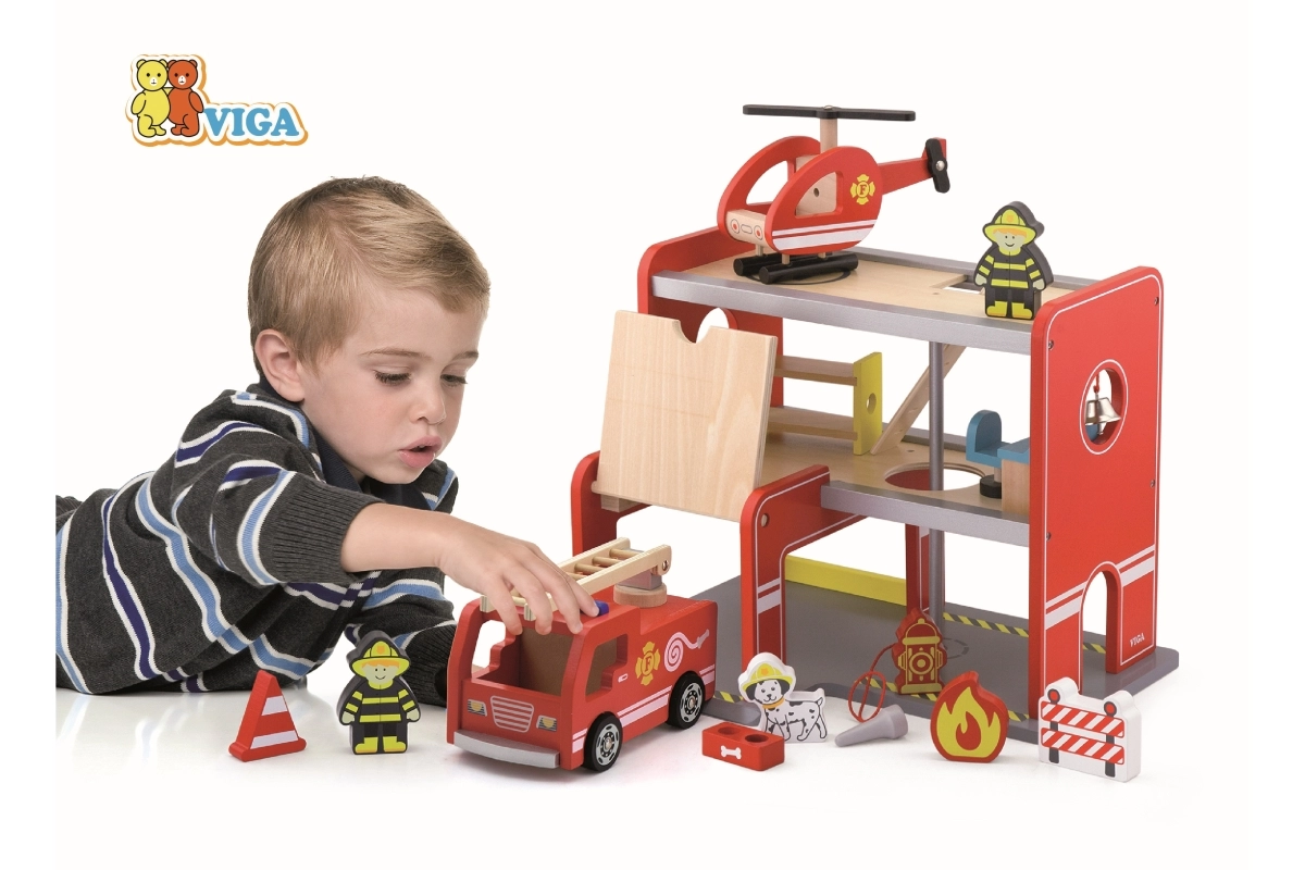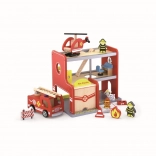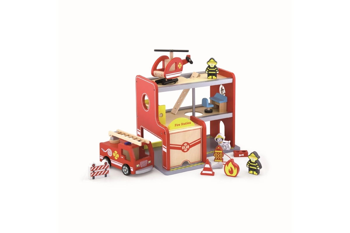 La caserne de pompiers à plusieurs niveaux, avec héliport et espace pour la voiture, plonge les enfants dans l’univers des secours et stimule leur imagination.