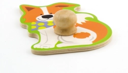 Chaque pièce possède un gros bouton en bois qui facilite la prise en main et l’insertion précise – idéal pour développer la motricité fine et la confiance de l’enfant.