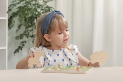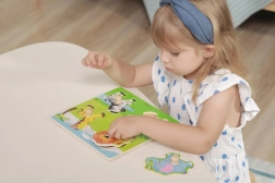 Sous chaque pièce se trouve une illustration pour un appariement facile. Les enfants s’exercent naturellement à reconnaître les formes et les animaux.