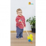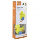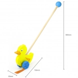 Canard à pousser en bois Viga est idéal pour les enfants qui apprennent à marcher. Ce jouet coloré soutient les premiers pas du tout-petit et est un excellent compagnon à la maison, au jardin ou au parc.