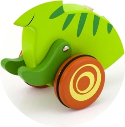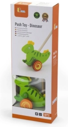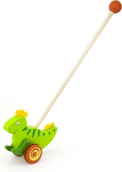 Le jouet pousseur en bois Dinosaure est un grand classique conçu pour les enfants qui commencent à se déplacer. Cet accessoire robuste est équipé de roues avec embouts antidérapants qui protègent le sol et facilitent le mouvement. Le dinosaure vert agite énergiquement les bras lorsqu’on le pousse, captivant et motivant l’enfant à continuer de bouger.