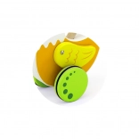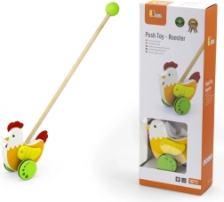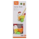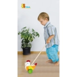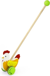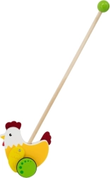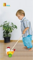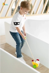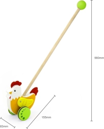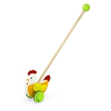 Ce pousseur avec petite poule soutient les enfants dans le développement de leur marche et de leur coordination.