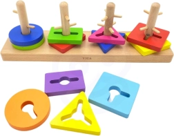 Le set empilable et trieur géométrique en bois Viga offre aux enfants un apprentissage ludique des compétences clés. Il se compose de cinq tiges sur lesquelles les enfants placent les formes correspondantes ; le défi consiste à faire coïncider correctement les formes avec les plots correspondants. Les couleurs vives attirent et stimulent les sens des tout-petits.