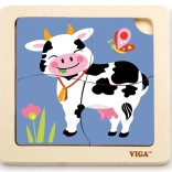 Le puzzle en bois se recompose en une adorable image de vache, ce qui stimule la créativité.