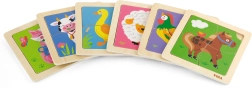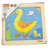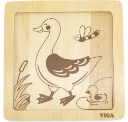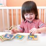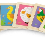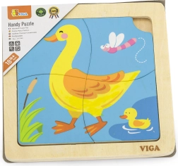Les puzzles en bois Viga comprennent quatre pièces thématiques qui se placent facilement sur une planche illustrée. Chaque pièce est fabriquée en bois de qualité et peinte avec des peintures sûres et non toxiques, assurant la sécurité des enfants et le respect de l’environnement.