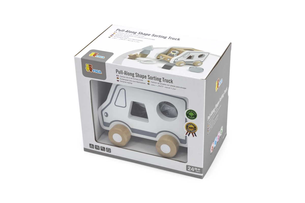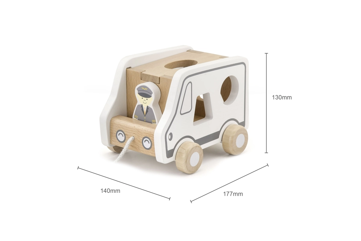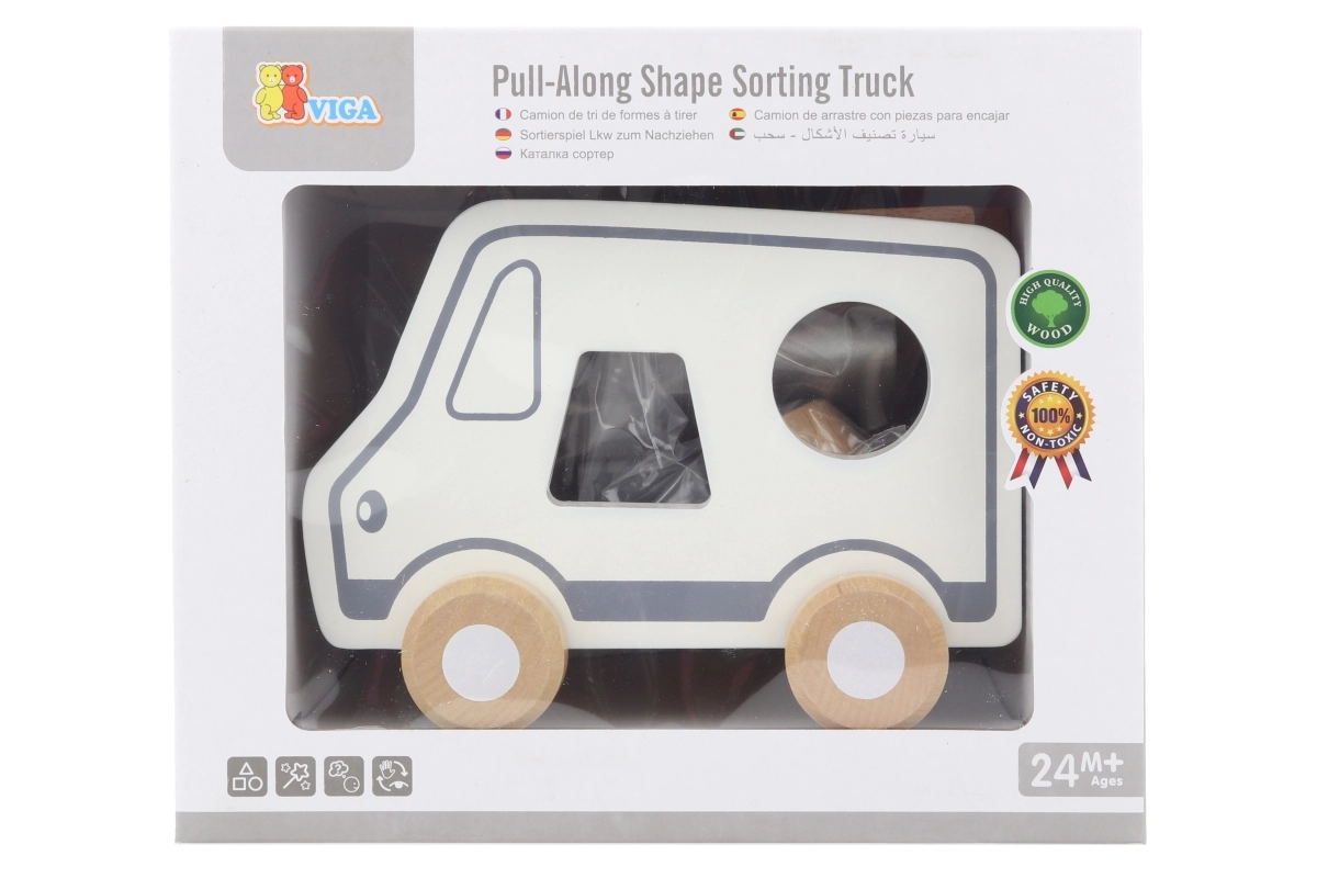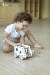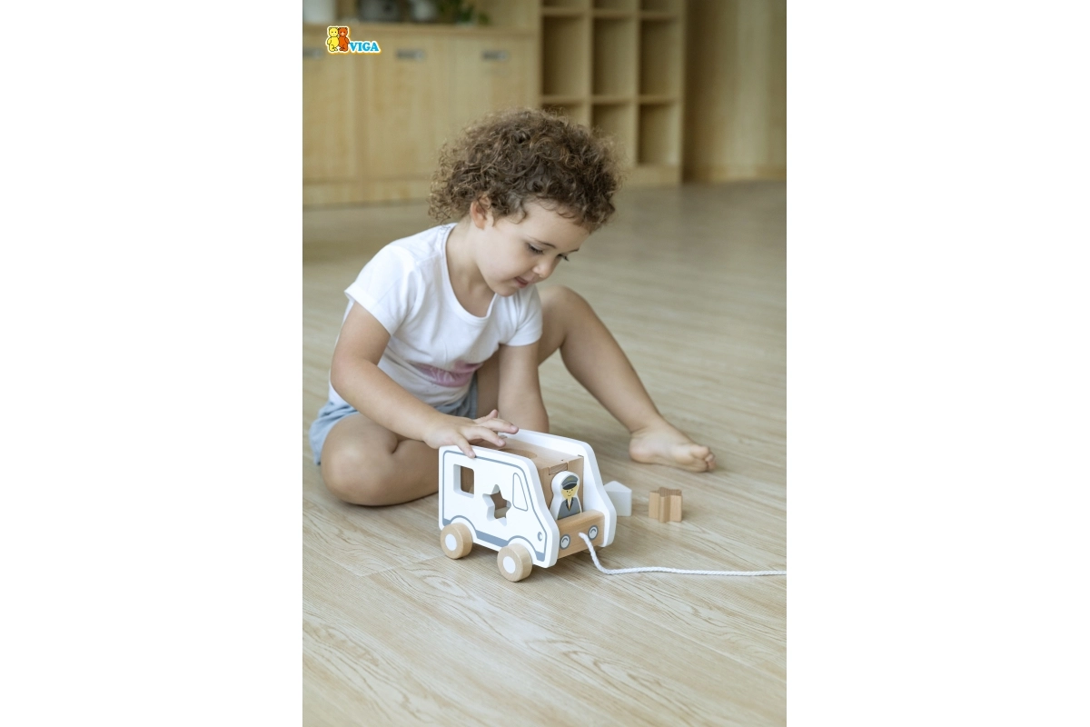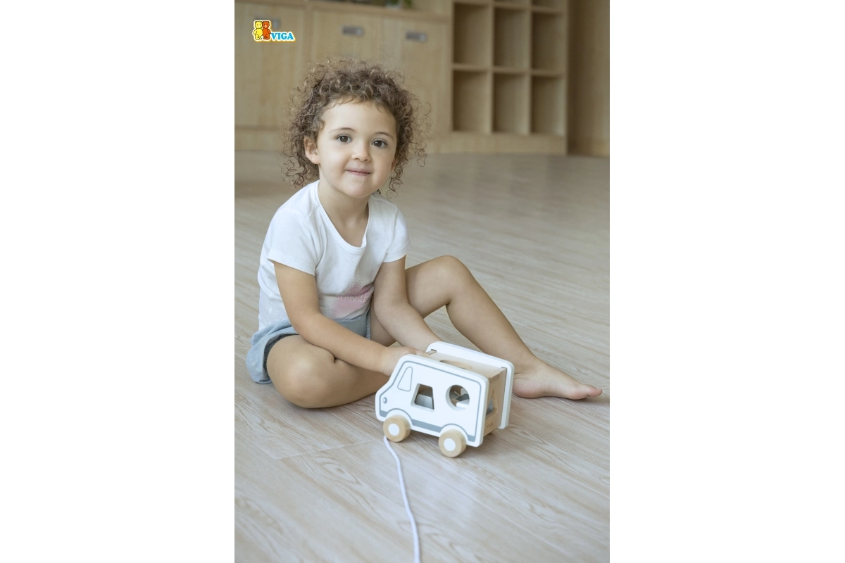 Ce jouet à tirer en bois en forme de camion réunit deux activités appréciées : tirer avec une corde et insérer des formes. Les enfants développent la reconnaissance des formes et la perception spatiale tout en profitant du mouvement et du jeu imaginatif avec un adorable petit camion.
