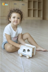 Grâce à sa fabrication robuste en bois et à ses bords arrondis, le jouet est sécurisé et résistant pour un usage quotidien. Ses dimensions compactes en font un excellent compagnon à la maison comme en déplacement.