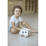 Une corde solide permet aux enfants d’emmener le petit camion partout. En le tirant, ils exercent leur coordination des mouvements et leur équilibre.