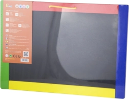 Ce tableau polyvalent réunit deux surfaces créatives en une – une face noire magnétique pour la craie et une face blanche effaçable pour le feutre. Les enfants peuvent écrire, dessiner et s'entraîner aux lettres et aux chiffres; sur la face noire, ils peuvent en plus fixer facilement des aimants. L'emballage contient tout pour une utilisation immédiate: 4 craies, un feutre effaçable et une éponge.