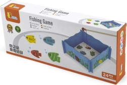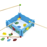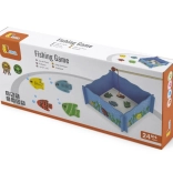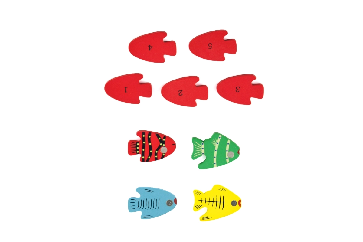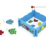 Le coffret comprend un bassin d’environ 35 × 13 × 5 cm, quatre cannes magnétiques pour jouer à plusieurs et 20 poissons numérotés, qui favorisent la numératie précoce et le tri. Grâce aux embouts magnétiques, pêcher les petits poissons est intuitif et amusant.