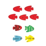 Le set comprend 20 poissons numérotés – idéal pour une première découverte des chiffres, le tri par couleurs et le calcul simple.