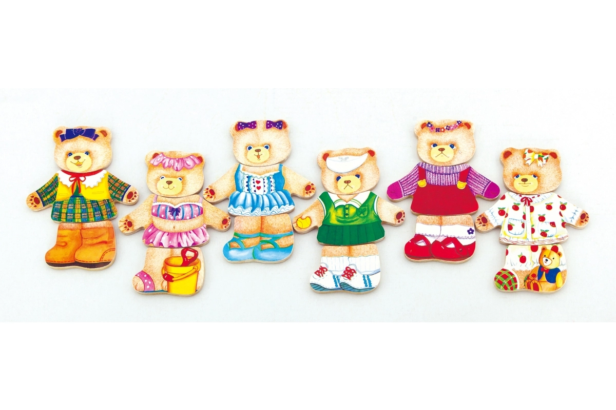 Vous cherchez un jouet créatif et éducatif pour les tout-petits ? Les puzzles en bois Viga « Habille l’oursonne » offrent un assemblage ludique de six combinaisons d’expressions et de tenues. Les enfants exercent de façon amusante leurs compétences motrices, la coordination œil-main et la compréhension des émotions.