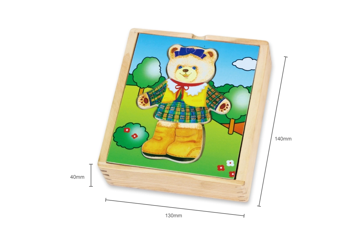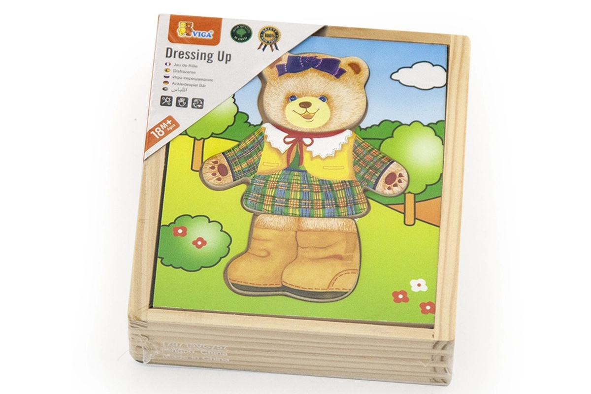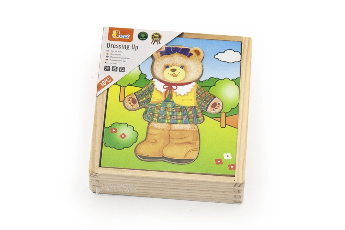 Adorable ensemble de puzzles en bois de la marque Viga permettant aux enfants de composer six images différentes d’une oursonne avec diverses humeurs et tenues. Favorise la motricité fine, la pensée logique et la reconnaissance des émotions, tandis que la boîte pratique garde toutes les pièces bien rangées.