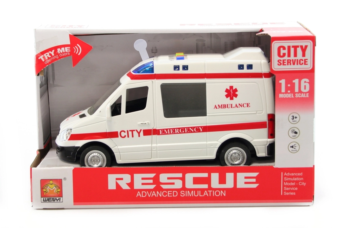 Une ambulance réaliste en plastique à piles qui ravira chaque petit secouriste. En appuyant sur les boutons sur le toit, elle s’illumine et émet des sons, possède des portes ouvrantes et des dimensions compactes idéales pour les petites mains.