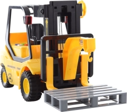 Un chariot élévateur en plastique réaliste à l’échelle 1:14 ravira les petits constructeurs dès 3 ans. En appuyant sur un bouton, il émet des sons et s’allume, ce qui renforce le jeu de rôle réaliste d’entrepôt ou de chantier. L’alimentation est assurée par 3× piles AG13/LR44, incluses dans l’emballage.