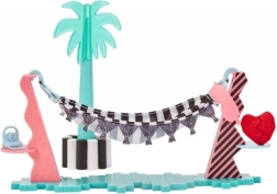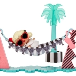 Crée un coin chill estival avec palmier, hamac et boisson – idéal pour le repos de ta poupée.