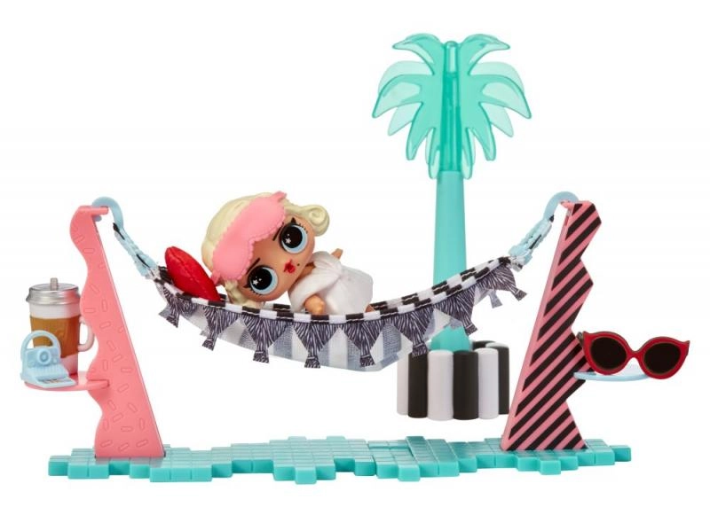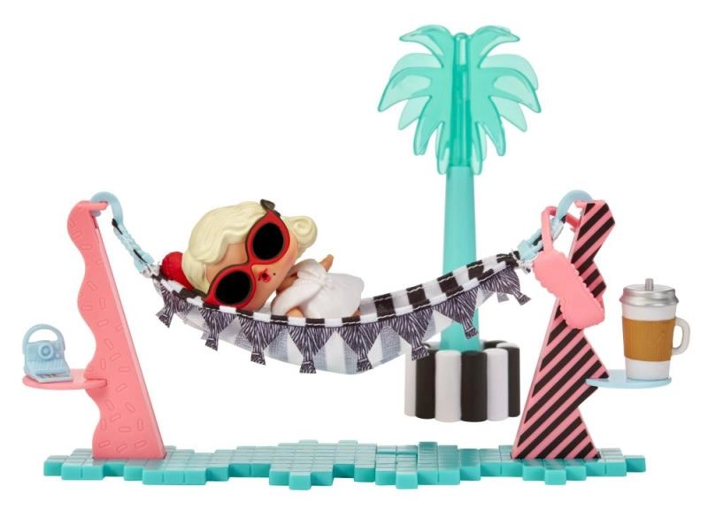 Profite d’une détente de vacances avec la poupée L.O.L. Surprise dans la série 6 du mobilier avec accessoires. Déballe plus de 10 surprises, transforme l’emballage en aire de jeu autonome et crée un coin tropical avec hamac, palmier et accessoires stylés. Compatible avec la Maison OMG 2, idéal pour un jeu créatif et imaginatif.
