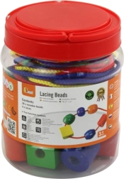 De grandes perles en bois dans une boîte pratique avec des lacets colorés feront le bonheur de chaque enfant dès 3 ans. Grâce à leur taille extra large, elles sont faciles à saisir et à enfiler en toute sécurité, ce qui favorise la motricité fine, la coordination œil-main et la reconnaissance des couleurs et des formes. Le coffret contient 30 perles et 4 lacets pour une créativité sans fin.