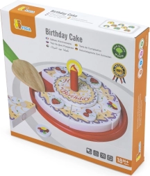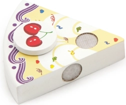 Le gâteau d’anniversaire en bois, présenté sur un plateau de service, est divisé en parts avec décorations et une bougie. Grâce aux bandes auto-agrippantes/aimants (selon la version), les éléments se séparent et se rassemblent facilement. Les enfants exercent la préhension, la précision et le vocabulaire en « soufflant la bougie » et en servant ensemble.