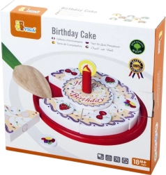Le plateau, les parts, la bougie et la pelle à servir créent une ambiance authentique de fête et encouragent le jeu imaginatif.