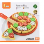 Amusante pizza en bois à découper avec plateau et spatule offrant des heures de jeu créatif. Les ingrédients amovibles et la découpe en parts développent la motricité fine, la coordination œil-main et le jeu de rôle des petits chefs.