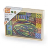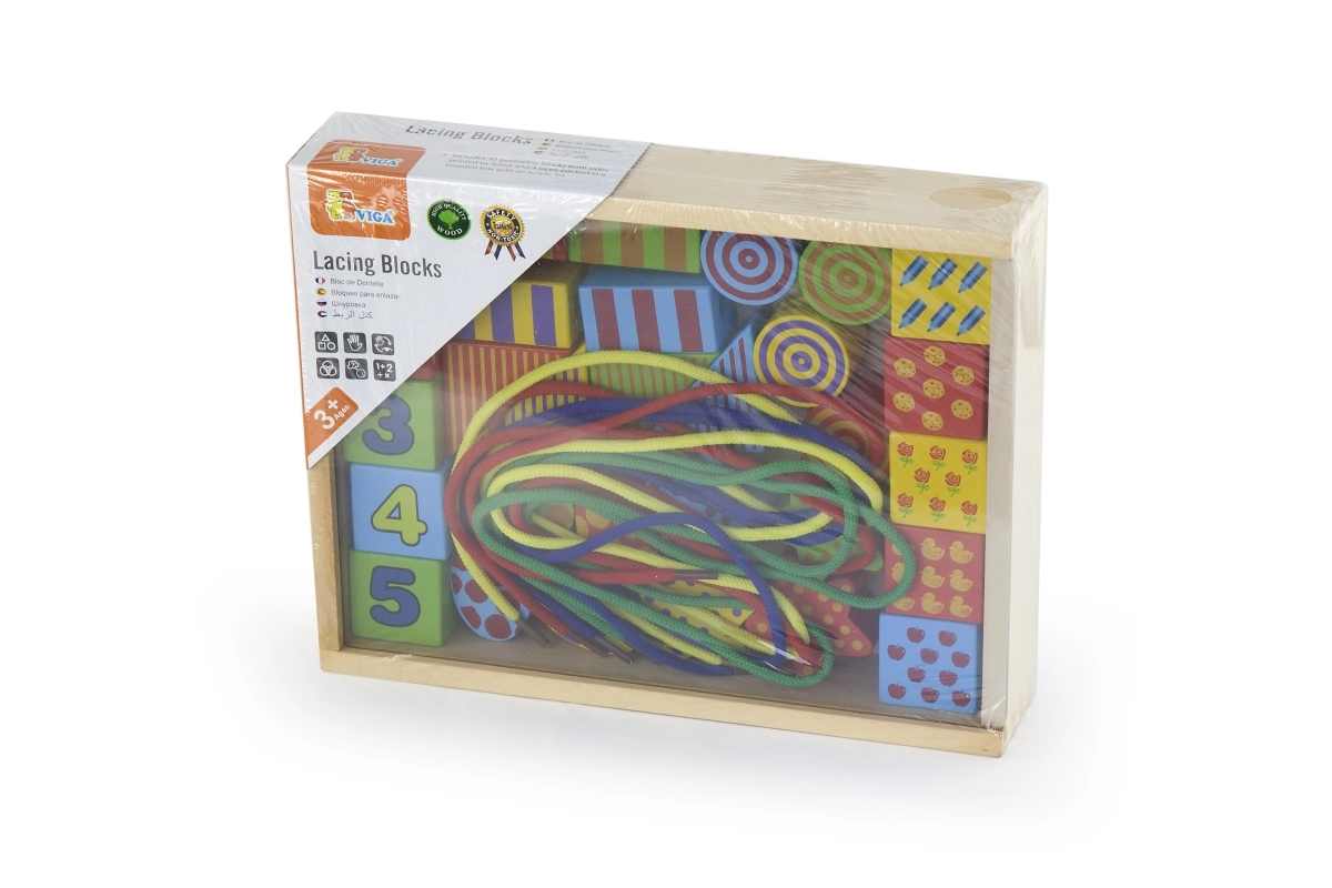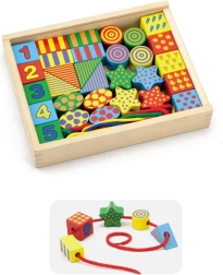 Découvrez un jeu créatif avec l’ensemble d’enfilage en bois VIGA – une boîte remplie de formes colorées à enfiler sur des cordons comme des perles. Favorise la motricité fine, la coordination œil–main et l’apprentissage des couleurs et des formes. Éléments en bois de qualité avec peintures non toxiques et grande taille pour une prise en main sûre.