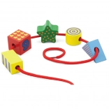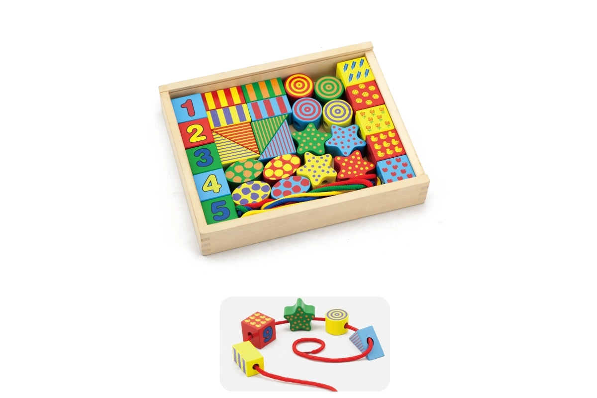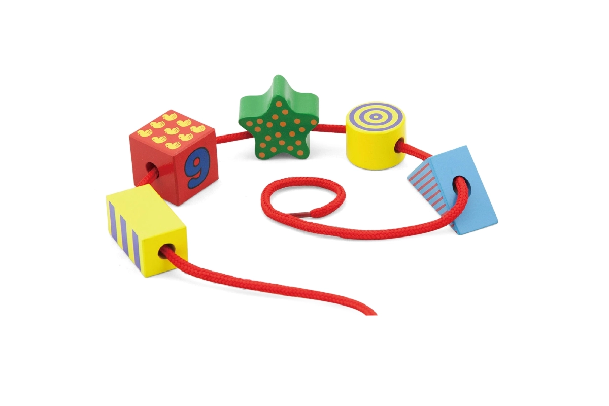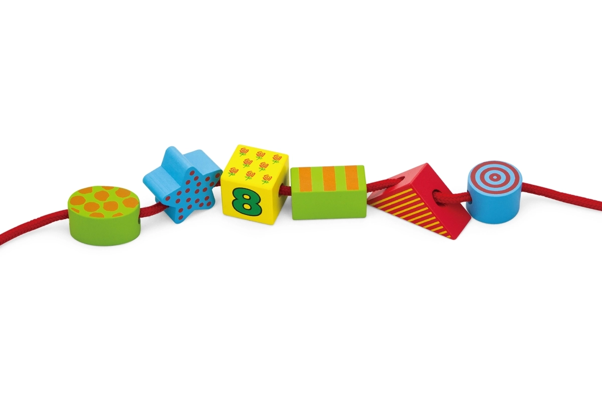 - Développement de la motricité fine – enfilage et manipulation des pièces.