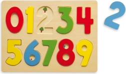 Ce puzzle numérique en bois propose dix pièces colorées séparées avec les chiffres 0–9 à insérer dans les emplacements correspondants. Les enfants acquièrent naturellement la reconnaissance des chiffres et exercent leur patience ainsi que leur concentration.
