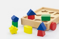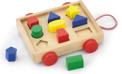 Le chariot contient différentes formes géométriques qui permettent aux enfants d’apprendre de manière ludique à reconnaître diverses formes.