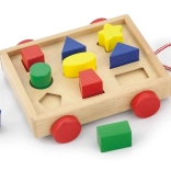 Le puzzle en bois à encastrer - chariot est un excellent jouet éducatif pour les enfants à partir de 24 mois, qui aide à développer la reconnaissance des formes et la coordination œil-main.