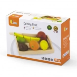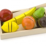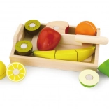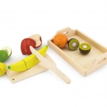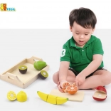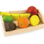 Les fruits et le couteau sont fabriqués en bois naturel, garantissant sécurité et durabilité pendant le jeu.
