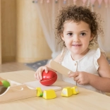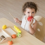 Grâce au velcro, les fruits peuvent être coupés et rassemblés en un seul geste, ce qui favorise le développement de la motricité fine.