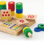 Un jouet en bois amusant et éducatif qui aide les enfants à développer leurs compétences mathématiques et motrices. Design créatif offrant d'innombrables possibilités de calcul à l'aide d'anneaux colorés et de plaquettes numérotées.